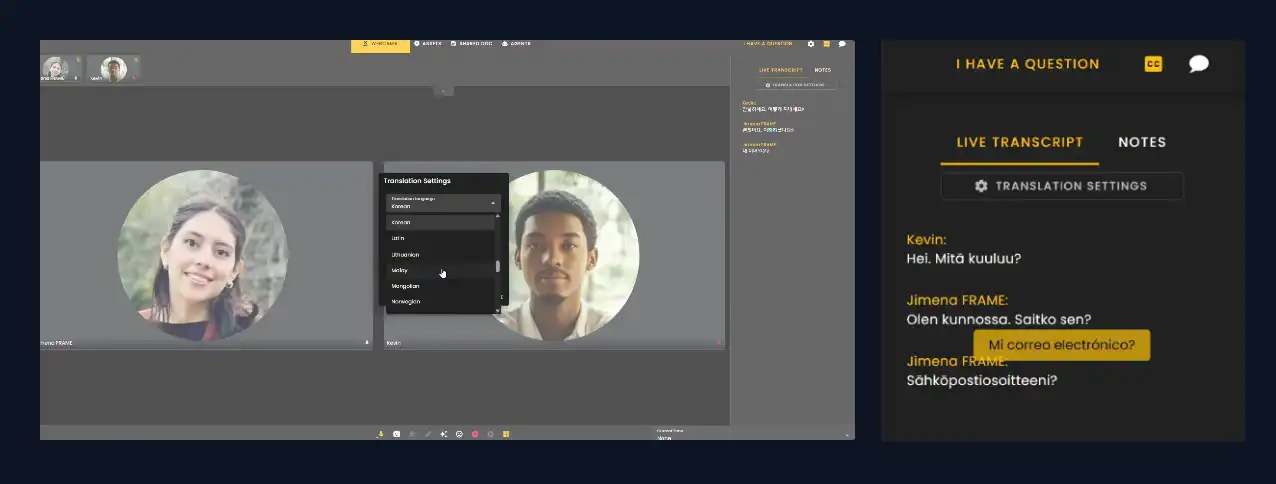 - •**Your Translation Interface:** Configure your settings to see the live transcript.