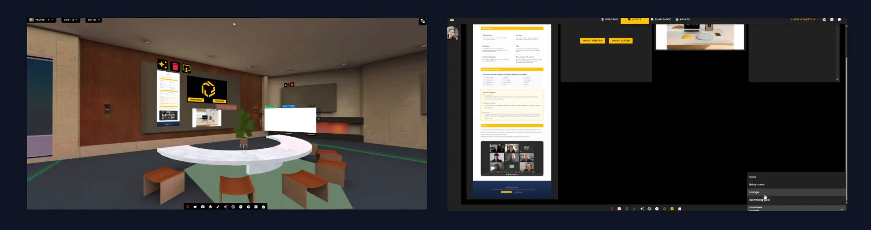 - •You can restrict access to voice zones or join one directly using a link with the voice zone name: `www.framevr.io/office#livingroom`.